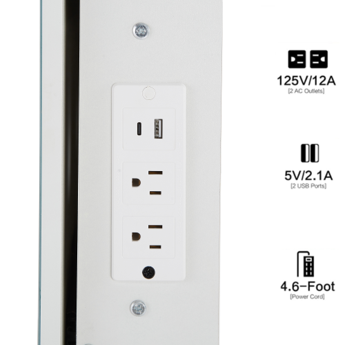 29.2" Small Size Left Drawer Desktop Vanity Table + Cushioned Stool, 2 AC+2 USB Power Station, Hair dryer bracket, Extra Large Touch Control Sliding LED Mirror, Tri-color Switching, Brightness Adjust