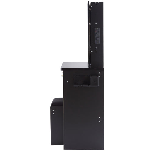 37" Middle Size Left Bedside Cabinet Vanity Table + Cushioned Stool Dresser Set, 2 AC+2 USB Socket, Hair Dryer Stand, Large Touch Control LED Sliding Mirror, 3-color Switch, EPA, GCC, UL Certificate